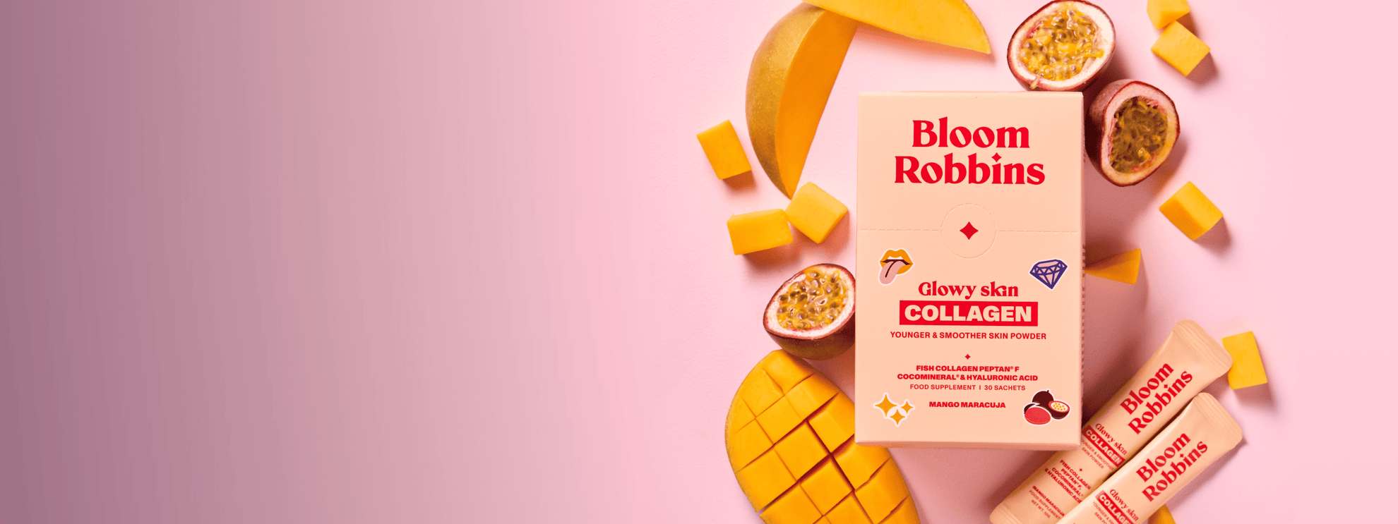Polvere al collagene gusto mango-maracuja da bere per una pelle più giovane e levigata Glowy Skin Collagen