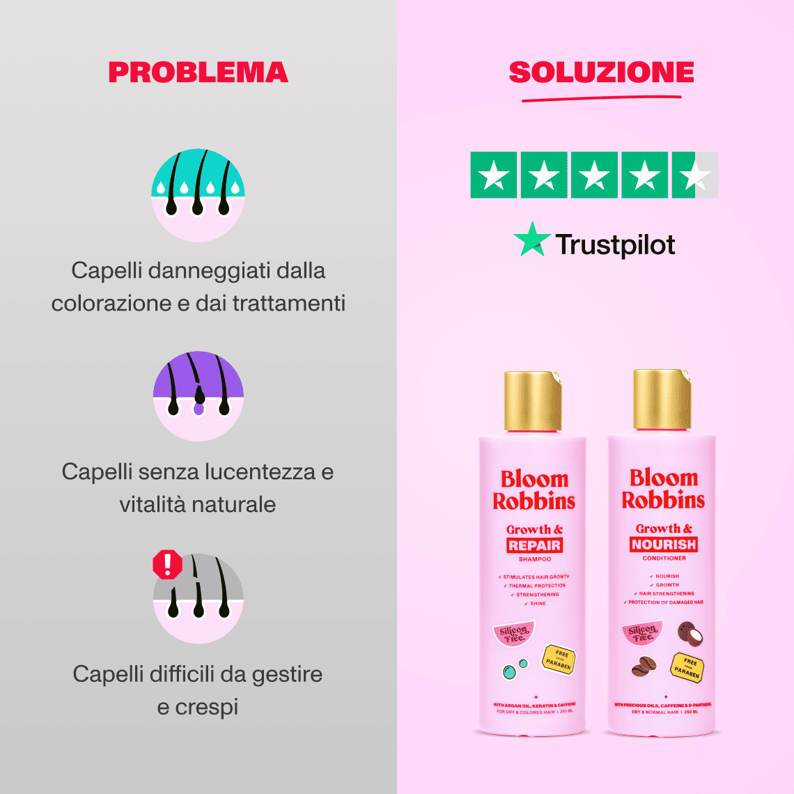 The Growth & Repair Shampoo with keratin dives deep into every strand, rebuilding its structure and restoring lost strength. Follow with the Growth & Nourish Conditioner, packed with rich shea butter, to flood your hair with hydration, seal in moisture and protect it from further damage.