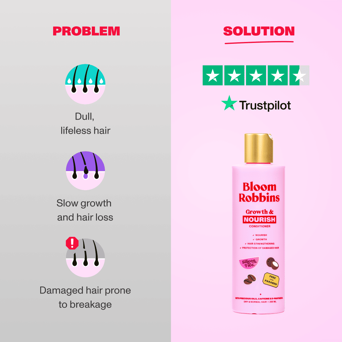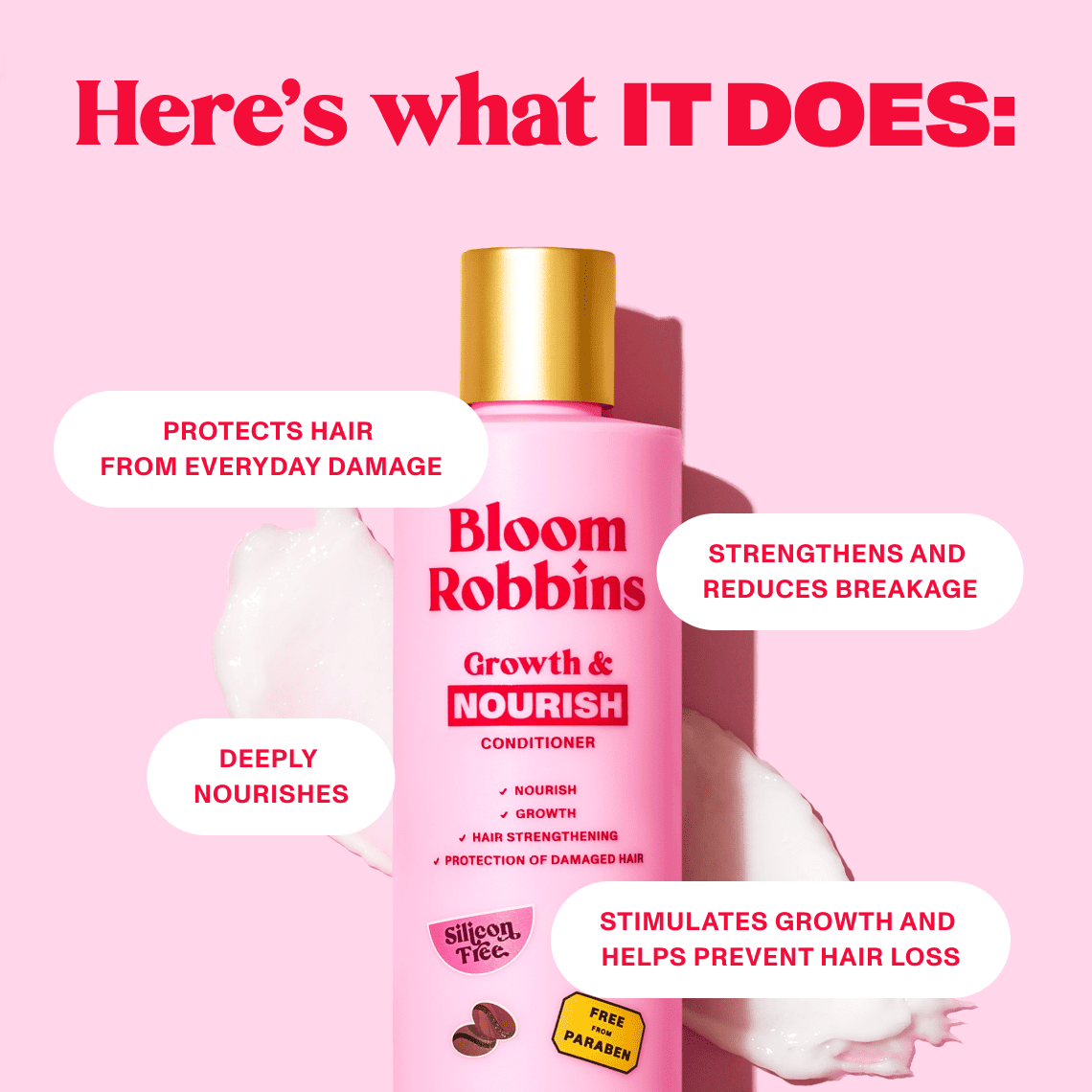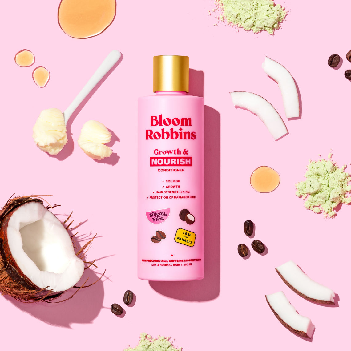 Desideri capelli forti, idratati e dalla lucentezza straordinaria? Ecco il tuo nuovo migliore amico: il balsamo Growth & Nourish! Questo concentrato di potenza non solo nutre e rinforza i tuoi capelli, ma ne stimola anche la crescita e li protegge dai danni. Arricchito con un rinfrescante profumo di cocco, la sua formula unica lascia i capelli setosi, flessibili e pieni di vitalità.