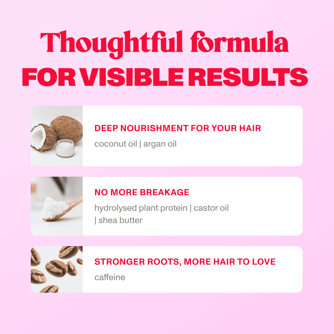 Aqua, Glycerin, Cetearyl Alcohol, Cetyl Alcohol, Behentrimonium Chloride, Butyrospermum Parkii Butter, Cetrimonium Chloride, Cocos Nucifera Oil, Isopentyldiol, Parfum, Phenoxyethanol, Argania Spinosa Kernel Oil, Distarch Phosphate, Ricinus Communis Seed Oil, Isopropyl Alcohol, Caffeine, Hydrolyzed Vegetable Protein PG-Propyl Silanetriol, Citric Acid, Ethylhexylglycerin, Benzyl Salicylate, Panthenol, Tocopheryl Acetate, Linalool, Sodium Hydroxide, Disodium EDTA, Potassium Sorbate