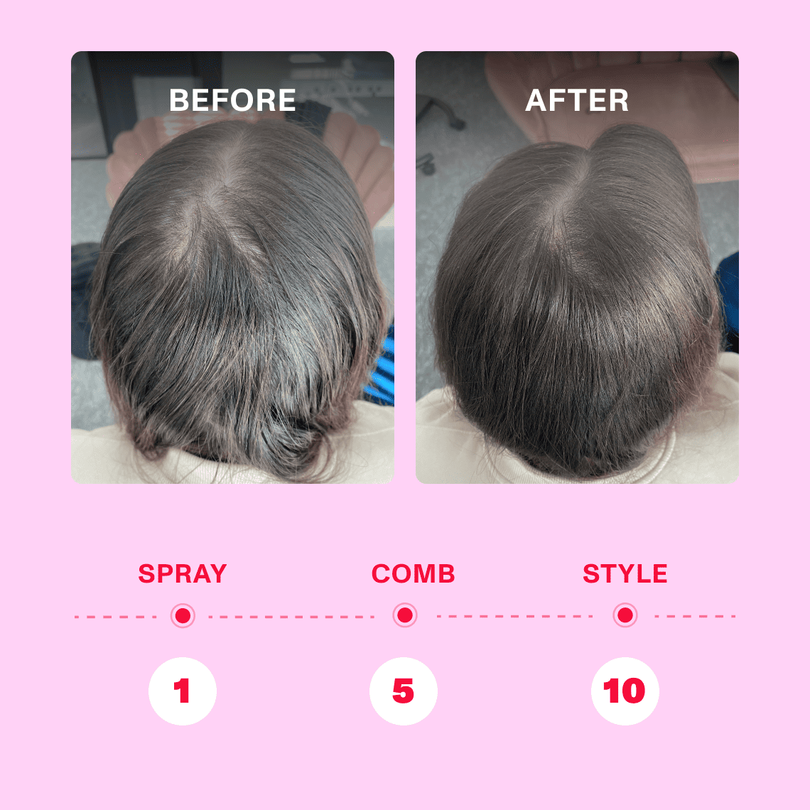 Dividi i capelli in sezioni e agita bene il flacone. Mantieni a circa 20-25 cm dalle radici e spruzza dove i capelli sembrano più sporchi. Usa il pettine per distribuire il prodotto in maniera omogenea.